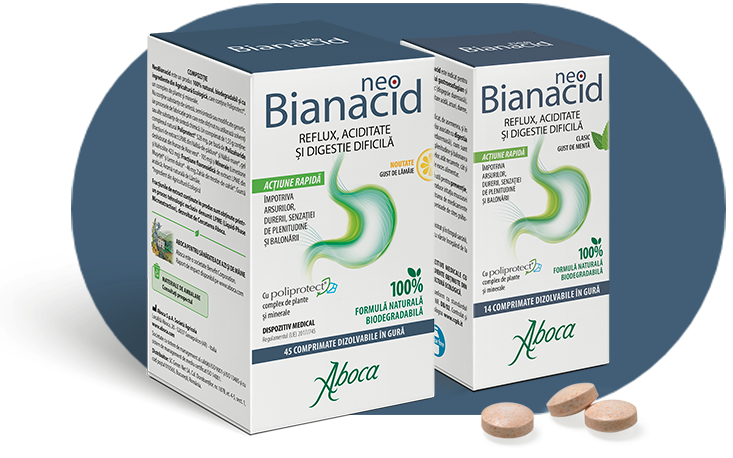 NeoBianacid este indicat pentru tratamentul refluxului gastroesofagian și al durerii de stomac (dispepsie dureroasă), caracterizate de regurgitare acidă, arsuri, durere, tuse iritantă, disfonie. NeoBianacid este indicat, de asemenea, și în tratamentul simptomelor asociate cu digestia dificilă (dispepsie nedureroasă), cum sunt aciditatea, senzația de plenitudine și balonarea după consumarea meselor, atât recurente, cât și asociate cu episoade de exces alimentar. NeoBianacid poate fi util pentru prevenție, în situațiile care pot produce iritația mucoasei (de exemplu, administrarea de medicamente antiinflamatoare sau perioade de stres psiho-fizic). Produsul poate fi administrat și în timpul sarcinii, al alăptării și copiilor cu vârste începând de la 6 ani.